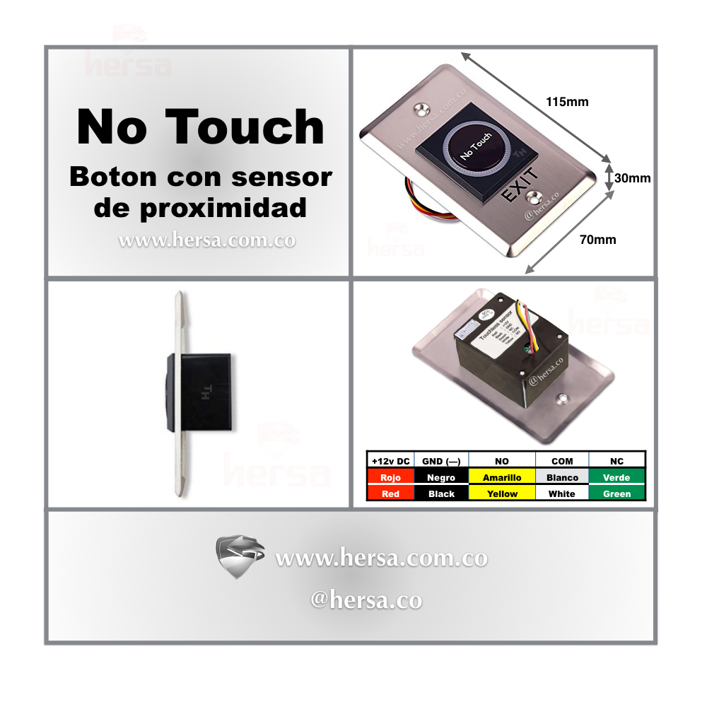 El botón no touch le permitir· la apertura de una puerta solamente pasando su mano a una distancia hasta de 10 cm del sensor, siendo esta acción configurable gracias a un control de sensibilidad incorporado. Y al no existir contacto físico con el sensor, lo mantiene limpio e higiénico evitando enfermedades de contagio, esto prolongando su tiempo de uso y vida útil.