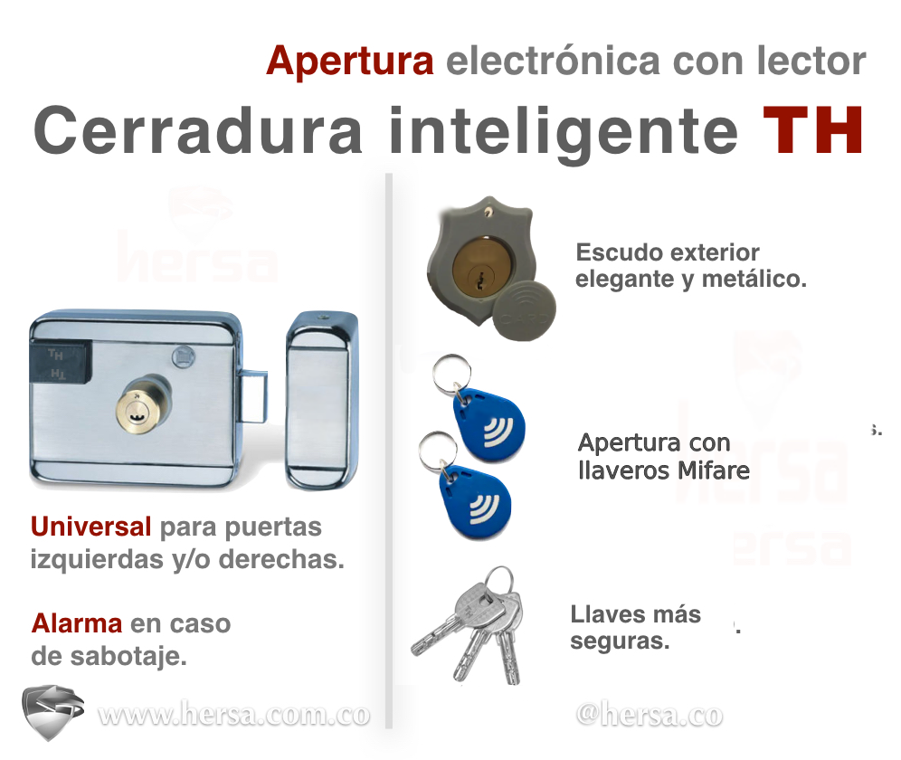 La cerradura TH-074, es una cerradura inteligente, estética, con precisión y tecnología innovadora, que facilita el control de ingreso y salida por medio de un lector RFID de frecuencia 13.56 MHz (Mifare), automatizando por completo su ingreso y dejando de lado el uso de las llaves tradicionales.
