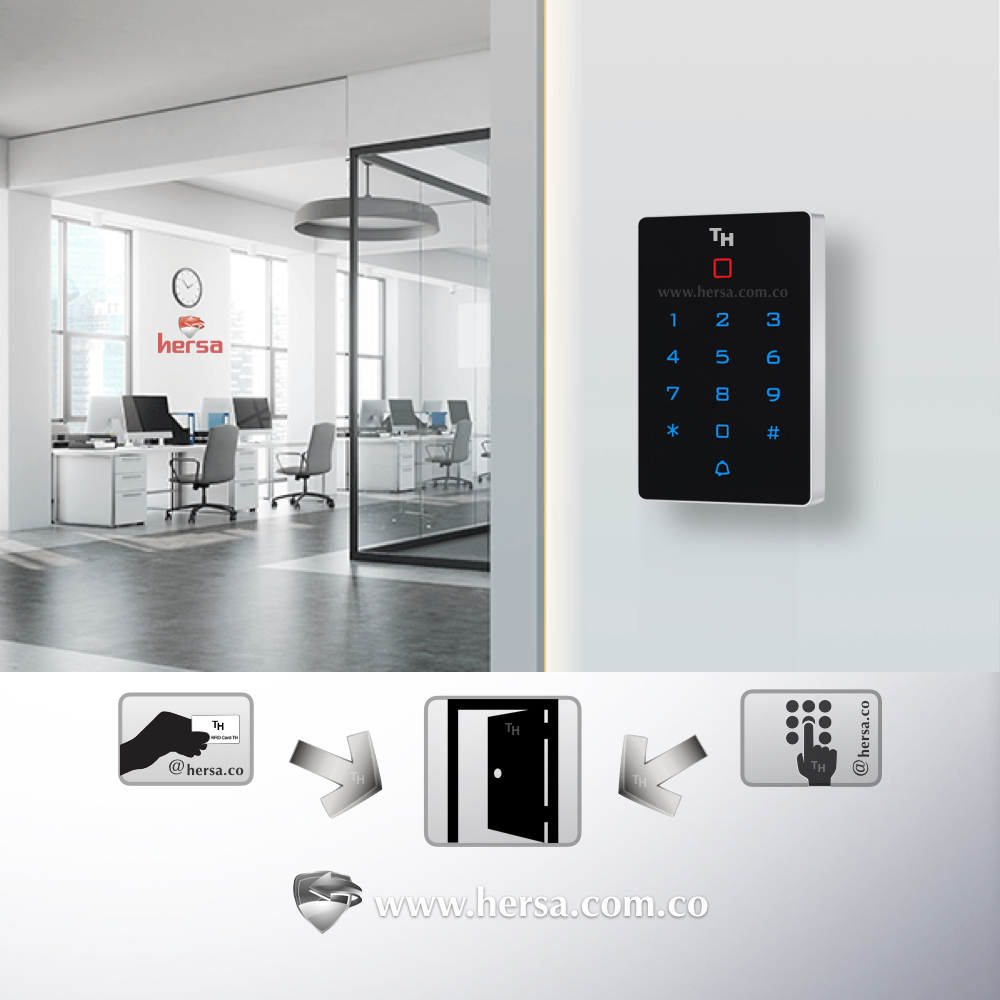 Su acabado en plástico ABS de alto impacto y con teclado táctil, ideal para el montaje en recepciones de oficinas, zonas especiales de acceso restringido y demás. Compatible con cerraduras eléctricas, electroimanes, abre puertas, cantoneras y prácticamente cualquier sistema de apertura de puerta eléctrica.