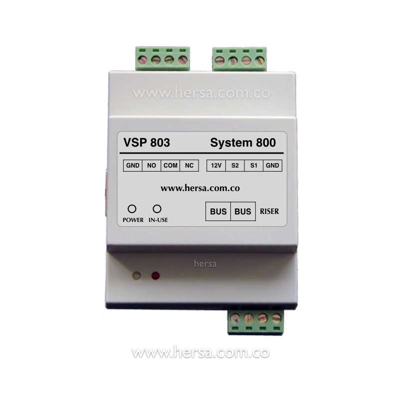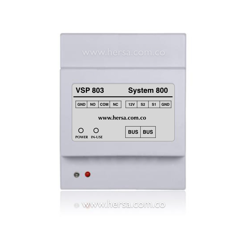 Permite la conexión de una segunda cerradura, electroimán o cantonera al sistema Siera System 800. Es moderno, estético, con precisión y tecnología innovadora, no requiere alimentación para su funcionamiento, ya que se alimenta de la señal proveniente de la fuente centralizada.